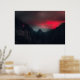 Fotografia paisagística de um pôr do sol irreal tirada no lago Lago di Fusine, Itália. A cor vermelha é um pouco exagerada, mas parada na vida real ela realmente sentia assim. Em pouco tempo o sol se espalhou pela neblina e tão rápido desapareceu.