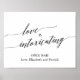 Este elegante amor por caligrafia negra é sinal intoxicante é perfeito para um casamento simples. A design neutra apresenta um sinal minimalista decorado com tipografia romântica e caprichosa. Personalize este sinal de bar aberto com os nomes da noiva e do noivo.