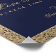 Um letreiro de casamento alfabético vintage e elegante, recomendado para um casamento com cores de casamento azul-marinho e dourado. O fundo é azul-marinho. Tem bordas douradas florais com decorações intricadas de rosas silvestres. Todo o texto é dourado. As palavras "O Amor é Doce" e os nomes são escritos em uma fonte caligráfica elegante, o restante em maiúsculas.