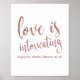 Um elegante cartaz de casamento de ponta, mostra o texto "O amor é intoxicante" em uma letra extrovertida, a textura brilhante acrescenta um toque festivo e glamouroso. A cor de fundo pode ser personalizada de acordo com as suas necessidades e preferências, contacte-me se tiver alguma solicitação especial.