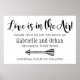 Sinal de boas-vindas de chic/poster apresenta o escrevendo na moda "Love is in the Air" (O amor está no ar) com sotaque design de seta. Esquema clássico de cores preto e branco.