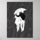 Uma imagem de silhueta de um casal romântico como visto pelas costas e caminhando pela rua sob o guarda-chuva na chuva pesada. Cor branca e preta. O amor não conhece um mau tempo. Um poster elegante minimalista para qualquer um. Você pode escolher a variedade de tamanhos de acordo com suas necessidades. Você pode transferir este design para muitos outros produtos, basta escolher a opção na imagem. Aproveite e seja feliz!