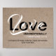 A na moda rusticidade parece inspiradora poster cristã baseada em 1 Corintianos 13:7-8. O texto lê AMOR INCONDICIONALMENTE na tipografia branca e negra. Os versos de script são gravados no cheio, mas este texto é PERSONALIZÁVEL para que você possa mudar a tradução de Bíblia para a sua versão favorita.