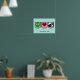 Um belo poster de gato teal apresentando um sinal verde de paz, coração vermelho, e um gatinho bonito enrolado em um quadrado. Personalize-o com os seus próprios nomes de gatos ou outro texto e permaneça no seu quarto ou escritório.