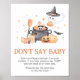 Torne o seu evento especial com este Chá de fraldas de Halloween com a nossa bela e adorável impressão Não diga o sinal de bebê com um tema de Chá de fraldas. Baixe, personalize e crie memórias duradouras com este toque perfeito para sua celebração alegre! BS901
