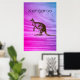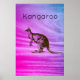 O Poster de canguru é um poster com a imagem de um canguru a preto contra um fundo colorido com a palavra "canguru".