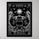 Design de cartão de tarot para amantes de horchata! O Horchata. Ilustração branca e preta com bastões de canela, flores, sol, sombrero e esqueletos.