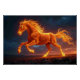 Um cavalo majestoso e poderoso, composto inteiramente de chamas vibrantes e turbilhonantes, galopa dinamicamente através de uma paisagem escura e estrelada de uma noite. Sua juba e cauda flamejantes deixam um rastro de brilantes brasas e faíscas que iluminam a cena, enquanto seus olhos intensos e brilhantes transmitem um espírito feroz e indomável. A forma muscular do cavalo é capturada em uma pose dinâmica, a meio caminho de uma passada, exalando energia bruta e movimento. Essa visão épica é ambientada em um cenário cósmico dramático de um céu profundo e cheio de estrelas, com nebulosas e galáxias distantes que adicionam à atmosfera sobrenatural. O contraste entre a vasta extensão celeste escura e o fogo radiante e vivo cria uma cena impressionante e heroica.