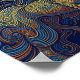 Um pôster em tamanho real e close-up de um cavalo desenhado com linhas suaves amarelas, azuis e laranjas em um fundo azul escuro. Arte fractal vetorial abstrata, função de onda, estilo Zentangle e sombreamento 3D se combinam para criar um padrão intrincado e hipnótico. As linhas vibrantes e fluidas criam uma sensação de movimento dinâmico contra o fundo profundo e contrastante, evocando uma representação poderosa e artística do animal.