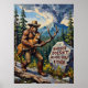 Esta pintura única apresenta Bigfoot, uma criatura muscular e peluda a vestir um chapéu de cowboy, numa via rochosa na natureza. Ele tem um galho grosso e denso e tem uma expressão séria, olhando para o lado. No primeiro plano, um sinal em uma rocha diz, "BIGFOT TAMBÉM NÃO ACREDITA EM VOCÊ", enquanto uma montanha majestosa e nuvens giratórias enchem o fundo. A trabalho de arte é feita com pinceladas grossas e texturizadas, dando à cena um sentimento robusto e provocador de pensamentos.