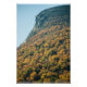 Uma fotografia de Cannon Mountain no outono. As folhas das árvores mudaram de verde para tons de laranja e amarelo. Estas cores cobriram a montanha, chegando perto do topo. O perfil da montanha são os restos da pedra granítica onde costumava estar uma face proeminente. Este dia de outono tem um céu claro e azul como fundo da cena. Imagem Copyright ©2024 Kimberly J Tilley. zazzle.com/store/developingnature