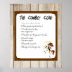 Nove ações a seguir em qualquer cowboys da vida para fazer dele um cowboy. Pequeno vaqueiro de desenho animado a cavalo na parte inferior direita. Quadro castanho sobre fundo "código" e "madeira". Semelhante em cor-de-rosa para cowboys. Um grande obrigado para que você armazene o prettygrafic para usar o cowboy em seu cavalo