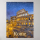 Poster em uma ilustração do Coliseu em Roma, sob um céu noturno estrelado, iluminado por um brilho suave e quente que lança sombras dramáticas nas pedras antigas.
