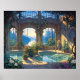 Um conservatório escondido repleto de vegetação exuberante e luz suave e dourada se abre para águas tranquilas além. Arcos graciosos e painéis de vidro enquadram uma piscina pacífica cercada por plantas em flor e videiras sinuosas, criando um retiro sereno e convidativo. A interação entre luz, água e folhagem evoca uma sensação de fuga tranquila, onde a natureza e a arquitetura se misturam em um ambiente harmonioso e sonhador.