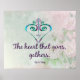 Belo poster apresenta coração roxo e na moda teal dispara uma famosa citação do Tao Te Ching : "O coração que dá, se reúne"