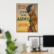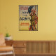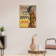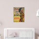 Um poster de recrutamento da Primeira Guerra Mundial mostrando um soldado ao lado de uma bandeira americana e soprando uma corneta.