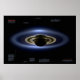 No dia 19 de julho de 2013, em um evento celebrado pelo mundo todo, a nave Cassini da NASA deslizou para a sombra de Saturno e virou para a imagem do planeta, sete de suas luas, seus anéis internos — e, ao fundo, nosso planeta, a Terra. Com os poderosos e potencialmente prejudiciais raios solares eclipados por Saturno, as câmeras de bordo da Cassini foram capazes de aproveitar essa única geometria de visão. Eles adquiriram um mosaico panorâmico do sistema Saturno que permite aos cientistas ver detalhes nos anéis e em todo o sistema à medida que são iluminados de volta pelo sol. Esse mosaico é especial por marcar a terceira vez que nosso planeta foi fotografado do sistema solar externo; a segunda vez que foi fotografado pela Cassini a partir da órbita de Saturno; e a primeira vez que os habitantes da Terra foram avisados antecipadamente de que sua foto seria tirada a uma distância de tal excelente. Em vez de sobrepor a imagem com texto, as informações são fornecidas acima e abaixo. É permitido um x 40" de 60". Para impressão de alta resolução a 30" x 20", que ajustado um quadro poster padrão. A imagem foi 'iluminada' pela NASA. Crédito: NASA/JPL-Caltech/SSI