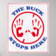 O dinheiro pára aqui. Design vermelho e azul em greve. Duas mãos levantadas: "A pedra pára aqui". O tema "Confie em mim" com um retrato.