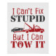 O design de dois caminhoneiros é um presente legal para homens ou mulheres que conduzem um reboque ou destroem. O design de reboque sarcástico é perfeito para o agente de repo. Diz: "Não posso consertar estúpido, mas posso puxá-lo."