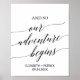 Esta elegante aventura de caligrafia negra começa a placa é perfeita para um casamento simples. A design neutra apresenta uma poster minimalista decorada com tipografia romântica e caprichosa. Personalize o sinal com seus nomes e data do casamento.
