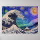 Colagens únicas de The Excelente Wave por Katsushika Hokusai (1760-1849) e The Starry Night com toque original de cor por Vincent van Gogh (1853-1890).