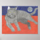 O desenho do gato e da lua foi criado com lápis coloridos por Julia Hanna.