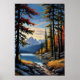 Experimente a tranquilidade do santuário da natureza através de um poster de arte digital cativante. Um lago sereno repousa no coração de uma floresta exuberante, suas águas estéreis refletindo a tranquilidade ao redor. Montanhas rochosas em direção ao horizonte, um testemunho da majestade da natureza. Essa poster capta a beleza serena de um lago silencioso abraçado pela luxuosidade da floresta e pela grandeza das montanhas.