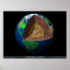 Dados sísmicos da Terra levaram a um modelo do interior que a particiona em um núcleo, manto e crosta. A crosta tem cerca de 30 quilômetros de espessura. O manto tem cerca de 2.840 quilômetros de espessura e o raio central é de cerca de 3.500 quilômetros de espessura. Cada partição pode ser dividida em regiões menores. A crosta pode ser classificada como oceânica ou continental, o manto como superior e inferior e o núcleo como líquido externo e sólido interno. Imaginado nesta vista de corte da Terra está a crosta, o manto, o núcleo exterior líquido e o núcleo interior sólido.