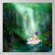 Há um lugar mágico de beleza e graça esperando por você com um abraço curativo. Onde sua energia fluirá com o brilho verde da natureza. Onde sua mente e corpo podem descansar e encontrar paz e felicidade. Onde seu espírito e alma podem tomar banho debaixo de um arco-íris Chakra, e dentro seu coração, o amor crescerá. Esta pintura de uma mulher cicatrizante sentada numa flor de lótus que está flutuando em uma lagoa azul, com um arco-íris Chakra, cascata-d'água, e arredores tropicais exuberantes, faz uma poster ou impressão de belas artes adorável e inspiradora. Design também está disponível em outros produtos.