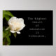 O maior resultado da educação é a tolerância - uma citação inspiradora com uma imagem de uma rosa branca pura sobre fundo escuro