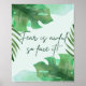 Design gráfico tranquilo com folhas verdes e uma citação inspiradora: "O medo é terrível, então encare!" O segredo para jogar medo é assistirmo-lo, não o deixemos quebrar o teu estilo - desencadear a tua bravura interna.
