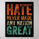 Poster O Ódio Nunca Fez Nenhum Excelente De Nação Engraça