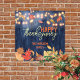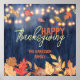 O outono quente encontra luzes confortáveis neste poster de Ação de Graças personalizável. Um fundo de madeira rústico e escura põe a cena, com uma cascata de luzes de fadas macios lançando um brilho suave sobre uma coleção de folhas vibrantes do outono. O design é centrado em torno de um elegante roteiro amarelo-ouro que lê "Feliz Dia de Ação de Graças", complementado perfeitamente pelas letras cor de laranja audaciosas do nome familiar personalizável abaixo. Esta poster é uma bela maneira de receber convidados e celebrar a história da sua família.