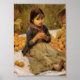 Vintage image da pintura de John William Waterhouse. Menina sentada num cobertor cercado por laranjas. Uma doce fotografia de uma infância antiquada. Dominio público.