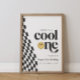 Um cara legal está virando um! Celebre seus meninos grandes dias em estilo com nosso retrorado feliz rosto feliz face ao poster de boas-vindas de aniversário amigável, com damas ondulados e um rosto feliz radical.