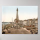 Poster de tamanho padrão, vai bem com o quadro padrão Zazzle. A partir de um fotochrom antigo c 1890-1900, poeira, sujeira e manchas removidas, as cores melhoraram. Uma animação agradável, muitas pessoas em uma rua movimentada, compras, a Torre Blackpool e a roda ferris no fundo. Blackpool é uma cidade borough, litoral, e uma área de autoridade unitária de Lancashire, no noroeste de Inglaterra. Situa-se ao longo da costa oeste da Inglaterra pelo mar da Irlanda, entre os estuários do Ribble e do Wyre, a 17,5 milhas (28,2 km) a noroeste de Preston, a 30 milhas (48 km) a norte de Liverpool e a 40 milhas (64 km) a noroeste de Manchester. Tem uma população de 142.900, fazer o terceiro povoamento mais populoso do Noroeste da Inglaterra, e uma densidade populacional que o torna o quarto distrito mais densamente povoado de Inglaterra e País de Gales fora da Grande Londres. Blackpool Tower é uma atração turística em Blackpool, que foi aberta ao público em 14 de maio de 1894. Inspirada pela Torre Eiffel em Paris, sobe para 158 m (518 pés e 9 polegadas). A torre é membro da Federação Mundial das Torres Excelentes. A torre é um prédio listado no grau 1.