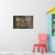 Uma poster de malhação motivacional de uma cerca de madeira com uma poderosa citação malhação por Felicity Luckey, designer e autora de motivação. As palavras da citação leram: Acredite em si mesmo e em seus objetivos de malhação é o interruptor de ignição que te tira do sofá e entra nos calçados de ginástica.