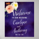 Esta coleção apresenta um fundo azul-da-meia-noite moderno com tipografia de tendência e sotaques florais. Personalize facilmente o design com sua redação para tornar este sinal totalmente exclusivo do seu dia especial.