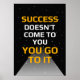 Poster motivacional. O sucesso não vem até você. Espaço aberto, estilo céu estrelado. Impressão design. Fundo escuro
