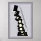 Azulejos semelhantes a cartas com estrelas e as fases da lua representando o tempo caem por um buraco aberto neste trabalho de arte abstrato/surreal de Richard H. Fay.