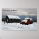 Uma cena de vitrine, rural, com um caminhão vermelho, velho e coberto de neve, sentado perto de uma cabine de ramshackle perto de Sandpoint, ID. Adicione seu próprio texto.