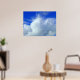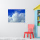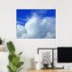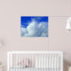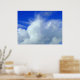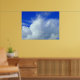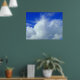 Um poster com uma foto atraente do céu, lã de algodão como nuvens contra os céus azuis vívidos.