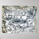 Caneta e desenho de tinta de um homem com animais no zoológico.
