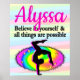 Prossiga as metas e sonhos da sua ginástica com a nossa crença fofa e personalizada em si mesma e todas as coisas são possíveis design no Roupa de ginástica, bens de festa, decoração e presentes em www.zazzle.com/GymnasticsStar. Esta ginasta é uma super estrela brilhante com suas habilidades fantásticas de ginástica. Este design de ginástica excepcional é um presente que deve ter para os aniversários, feriados ou qualquer ocasião. Sua determinada Gymnast será encorajada a se tornar uma campeã e será inspirada a vestir esta Camisa T para se lembrar que ela é uma campeã. Esta Gymnast acredita em si mesma e em seus sonhos.