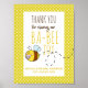 Muito fofo e moderno Chá de fraldas de Bee Obrigado. Historial brilhante de bolinhas de cor amarela e branca, com abelha bébé engraçada e engraçada com manequim (comfoter) e tipografia moderna. Para itens correspondentes como convites, particionários, etiquetas de presentes, solicitações de livros, cartões de agradecimentos, designer de entrega LeahG uma linha e ela ficará feliz em ajudar com sua solicitação personalizada.