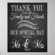 Pôster Obrigado, placa de casamento no quadro negro