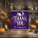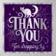 Um gato prateado brilhante senta-se no topo. Obrigado por caíres pelo glam Halloween roxo e poster