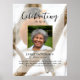 O pôster memorial perfeito para cumprimentar familiares e amigos ao entrarem na celebração da vida do seu ente querido. Especialmente para alguém que ama a natureza e a observação de pássaros - o design apresenta uma foto pessoal quadrada, 5 linhas de texto personalizado e uma foto de fundo de um robin. Você pode facilmente trocá-la por sua própria foto de fundo. Clássico, porém único - este modelo é muito fácil de personalizar e também será uma lembrança memorial maravilhosa.