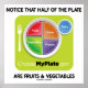 Mostre o seu lado nutritivo e dieta intenso com este poster com o logotipo MyPlate, assim como o ditado "Note que Metade da Placa São Frutas e Produtos Hortícolas". Nota: Este poster que inclui o logotipo MyPlate não é endossado nem apoiado pelo Departamento de Agricultura dos EUA.