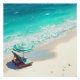 Pôster Ocean Beach com Chaise Lounge e Umbrella